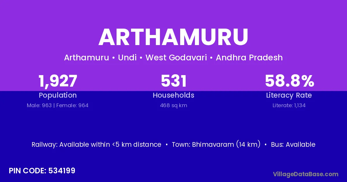 Arthamuru village has a total population of 4,080 people, of which 2,061 are males and 2,019 are females.