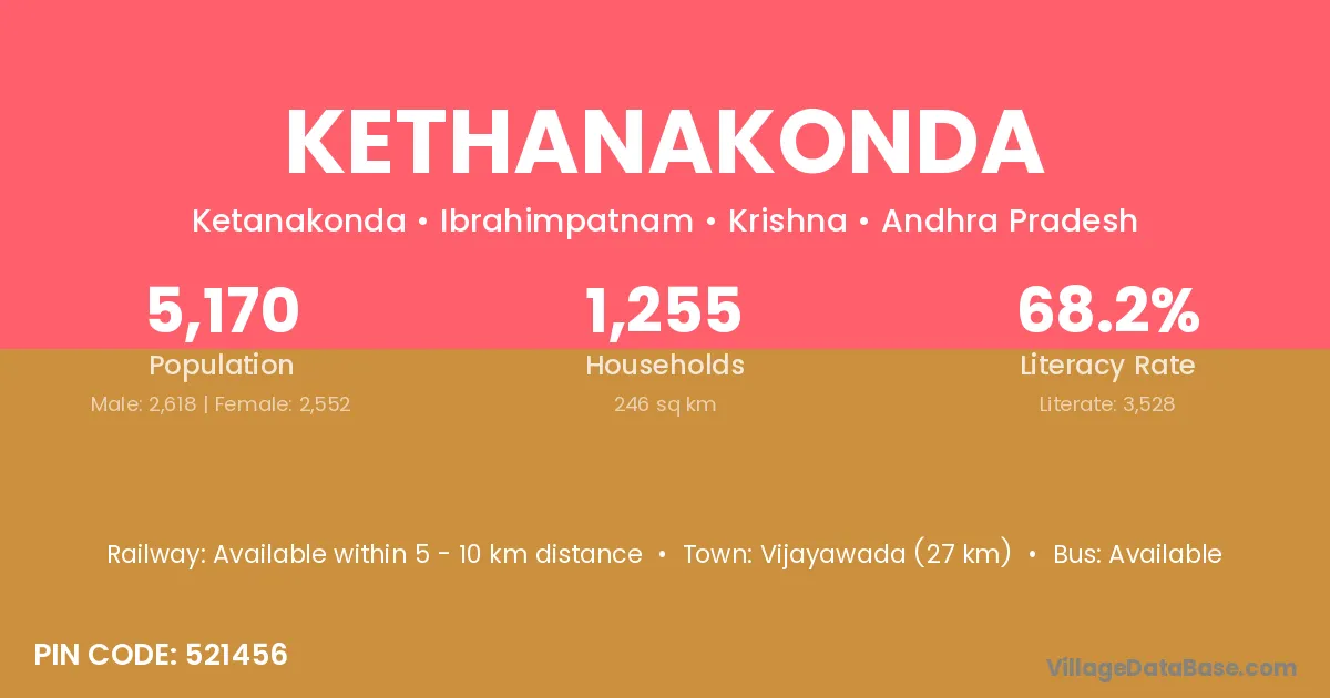 Vijayawada (27 km) is the nearest town to Kethanakonda village for major economic activities and is located approximately 27 km away.