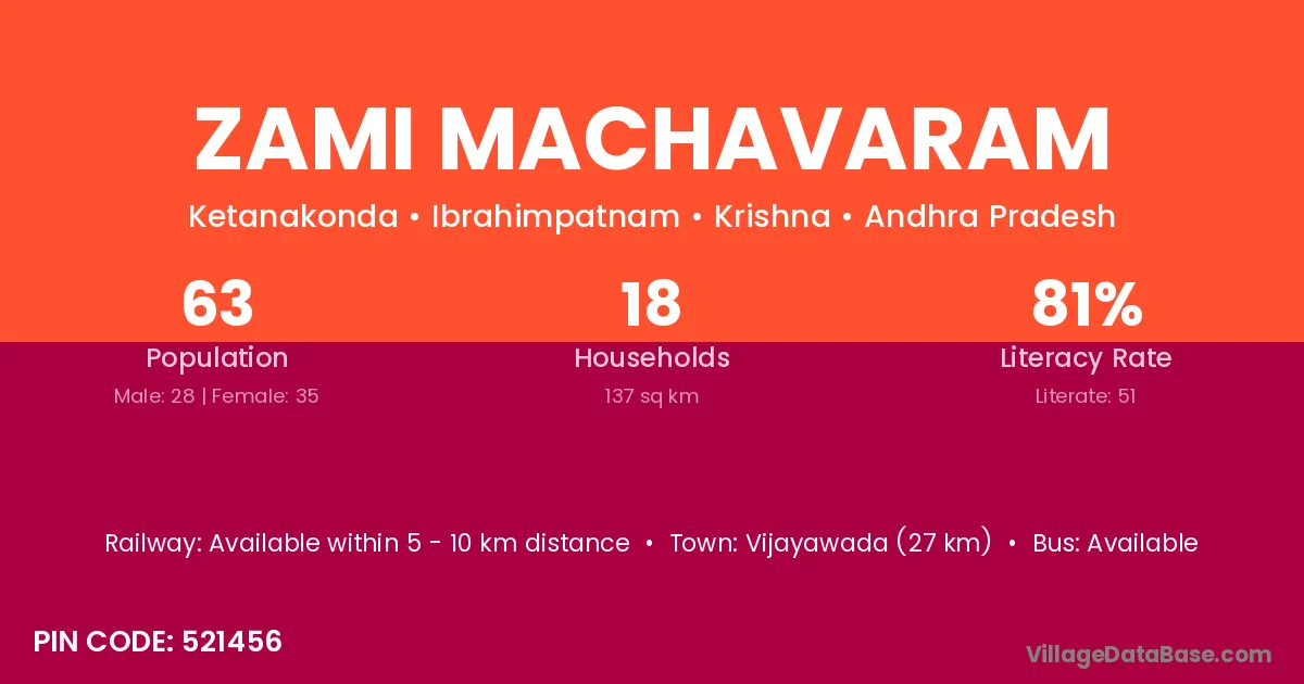Zami Machavaram village has a total population of 63 people, of which 28 are males and 35 are females.