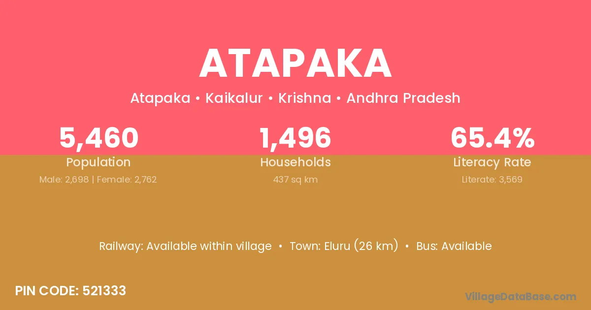 Eluru (26 km) is the nearest town to Atapaka village for major economic activities and is located approximately 26 km away.
