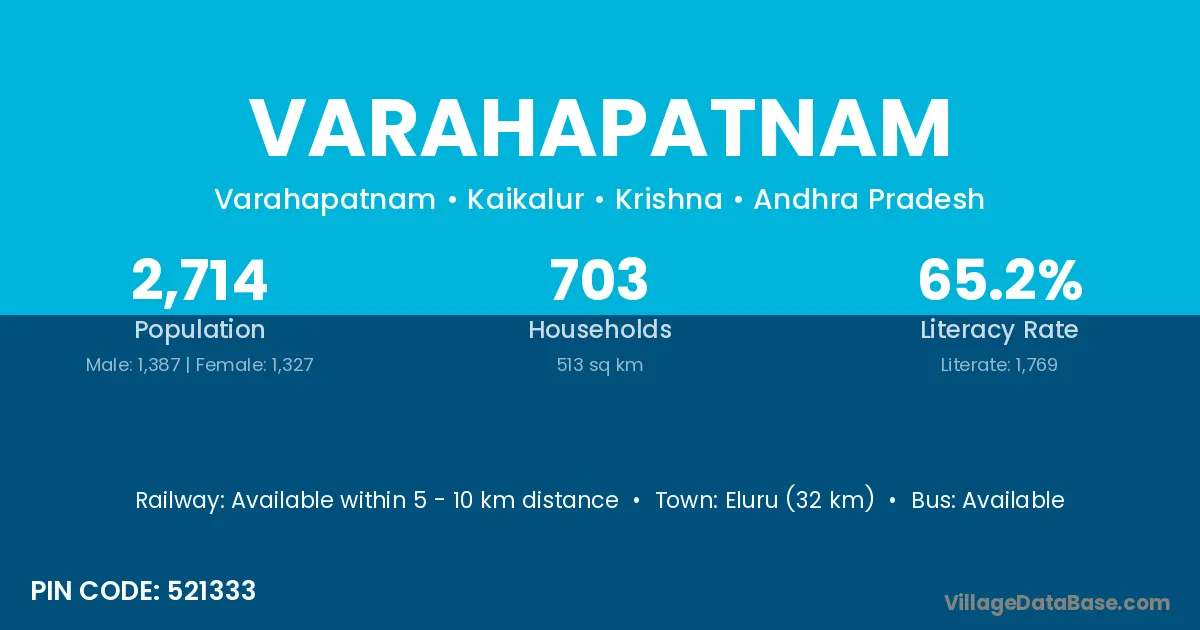 Varahapatnam village has a total population of 2,714 people, of which 1,387 are males and 1,327 are females.