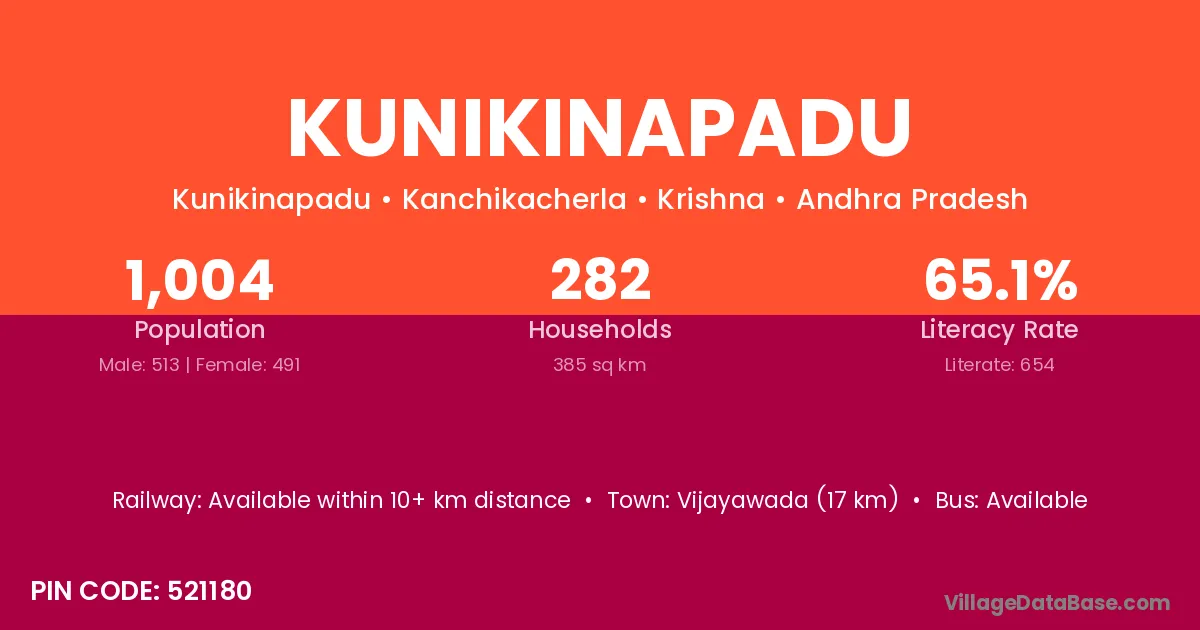 According to Census 2011 information, the village code of Kunikinapadu village is 521180.