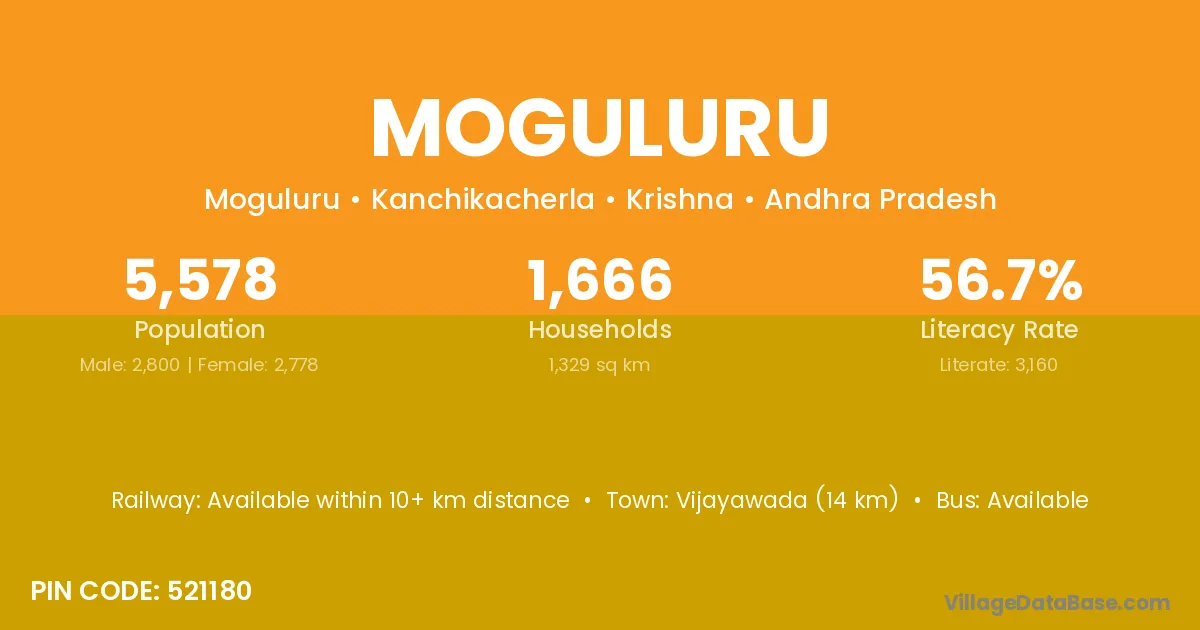 According to Census 2011 information, the village code of Moguluru village is 521180.