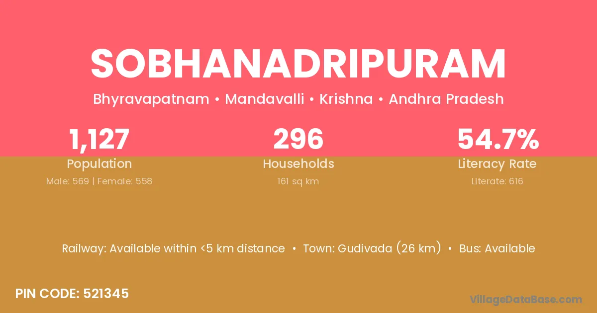 Sobhanadripuram village has a total population of 1,127 people, of which 569 are males and 558 are females.