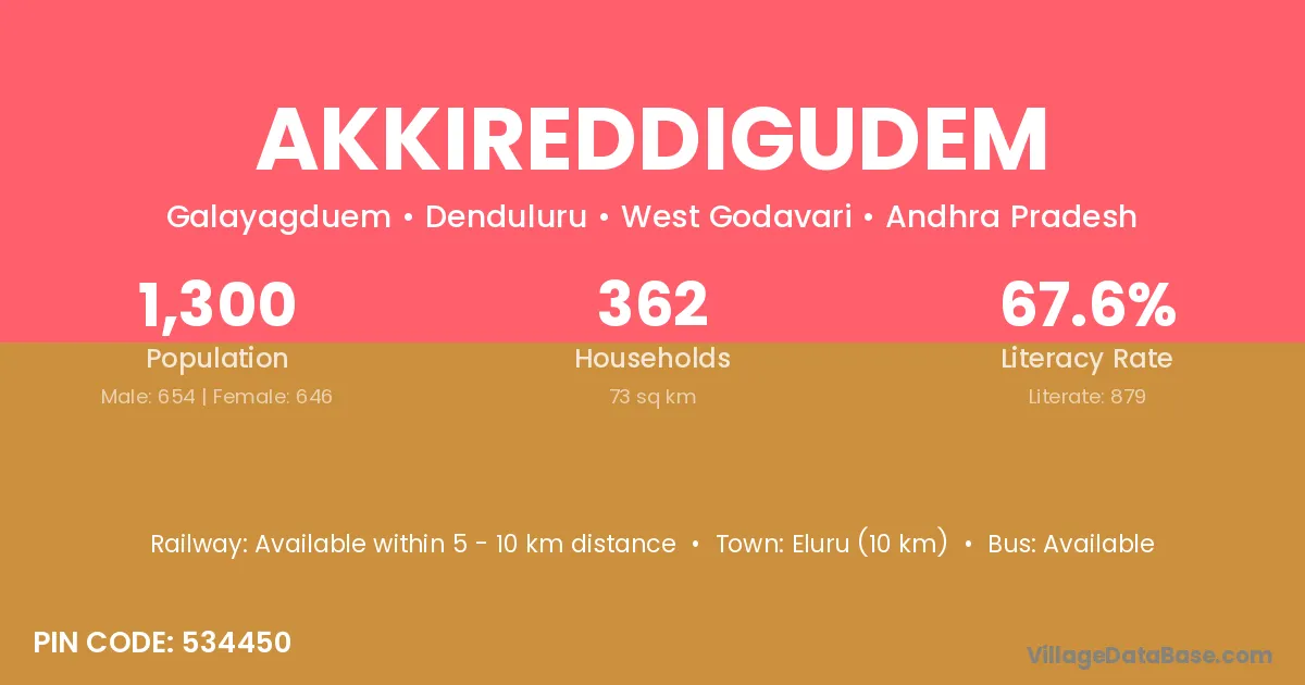According to Census 2011 information, the village code of Akkireddigudem village is 521213.