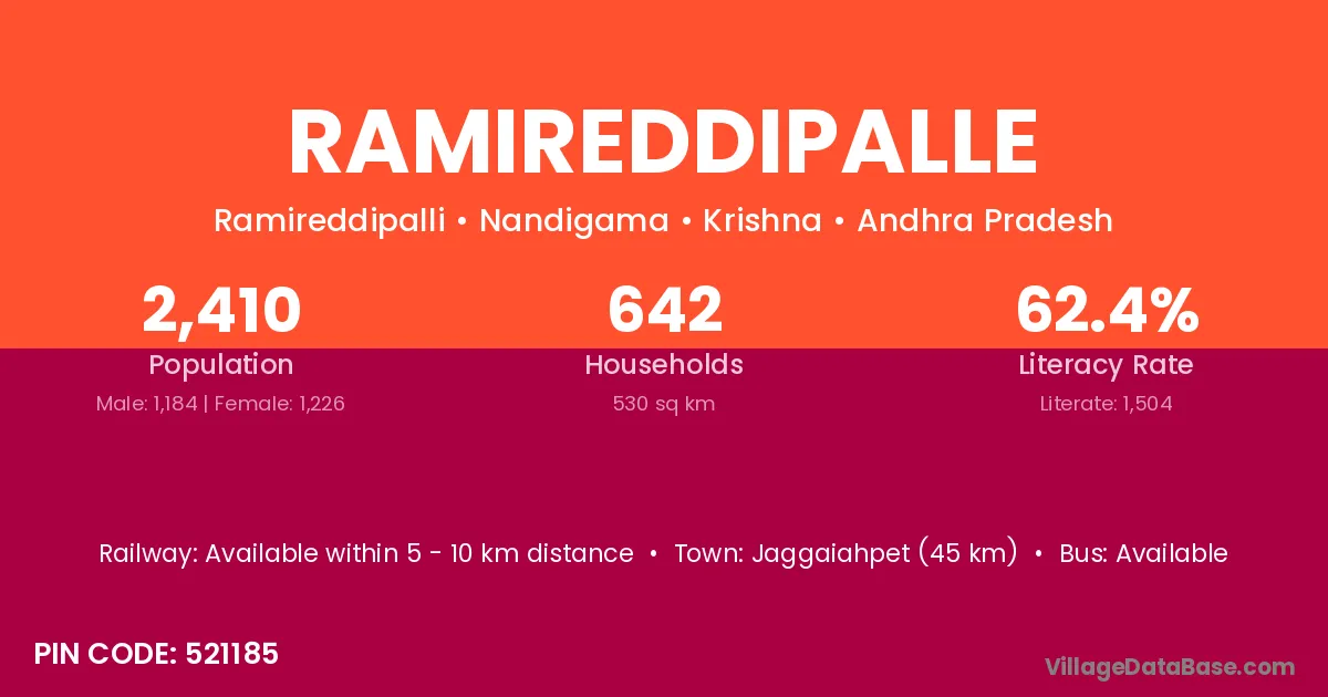 Jaggaiahpet (45 km) is the nearest town to Ramireddipalle village for major economic activities and is located approximately 45 km away.