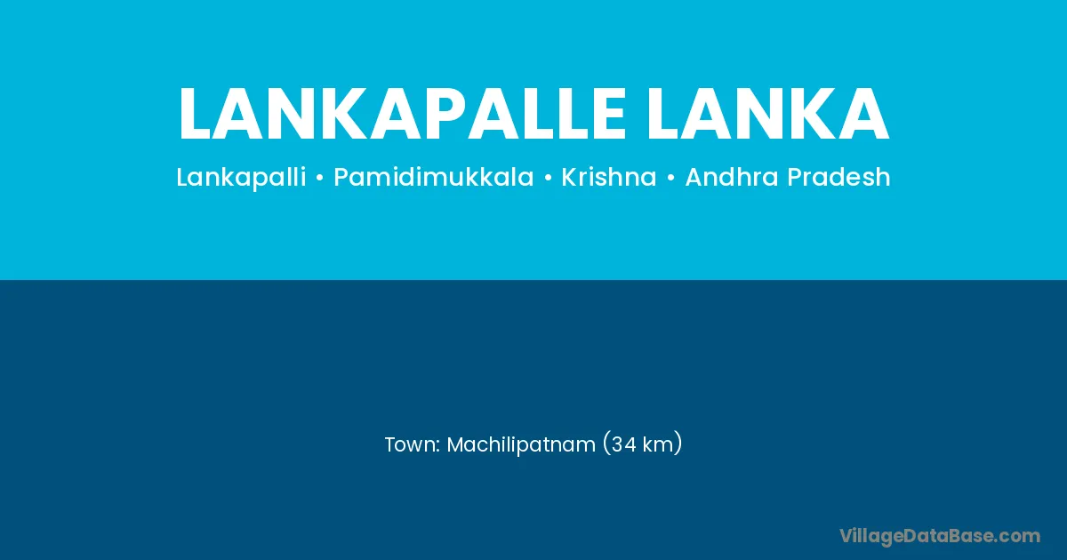 Machilipatnam (34 km) is the nearest town to Lankapalle Lanka village for major economic activities and is located approximately 34 km away.