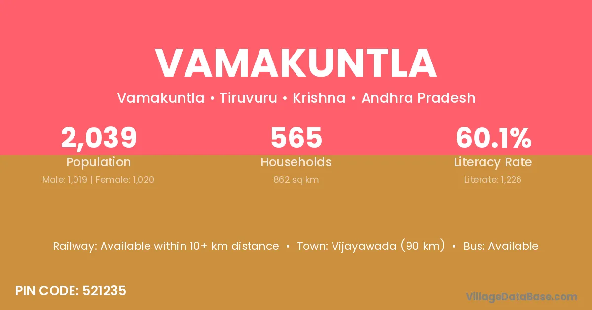 Vamakuntla village has a total population of 2,039 people, of which 1,019 are males and 1,020 are females.