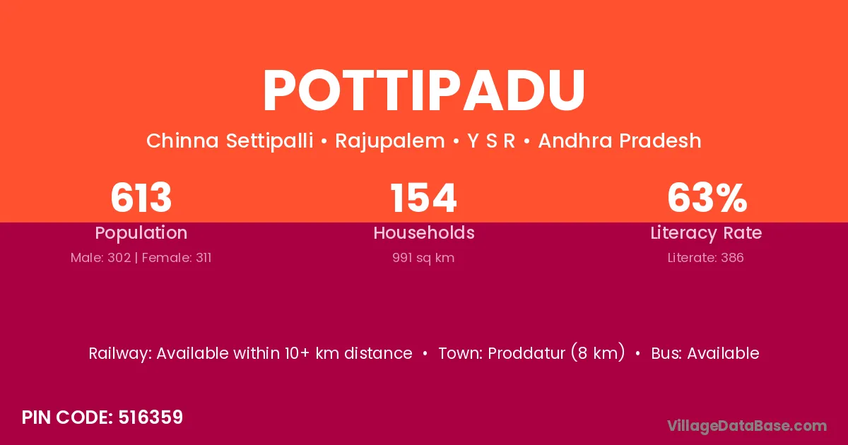 There are approximately 813 households in Pottipadu village.
