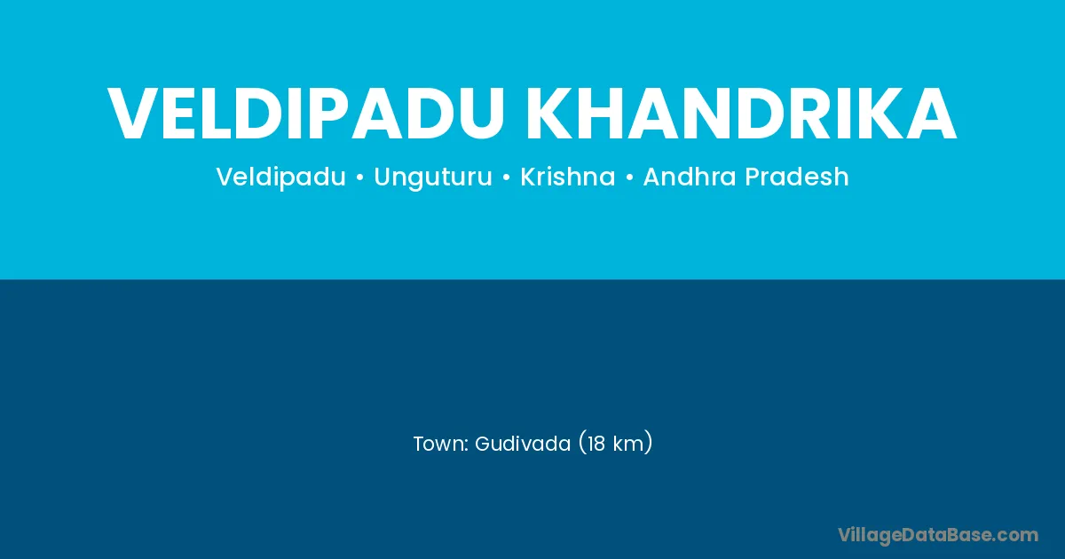 Gudivada (18 km) is the nearest town to Veldipadu Khandrika village for major economic activities and is located approximately 18 km away.