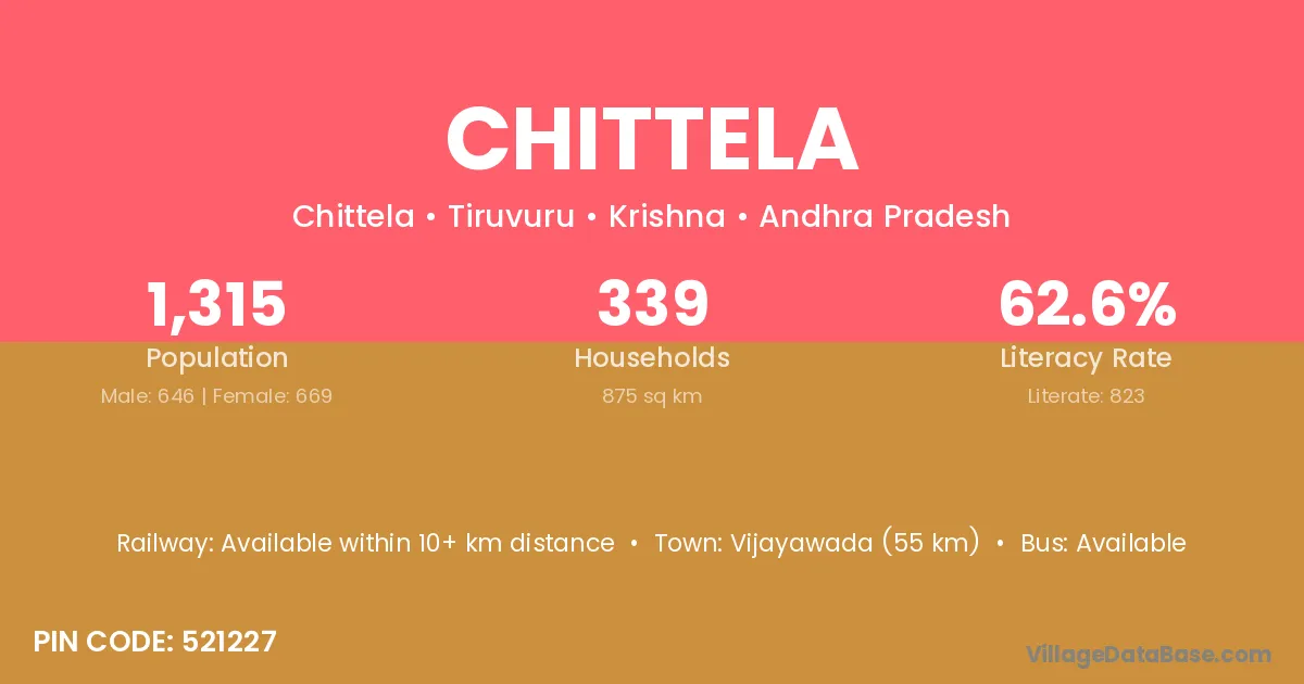 Jaggaiahpet (13 km) is the nearest town to Chittela village for major economic activities and is located approximately 13 km away.