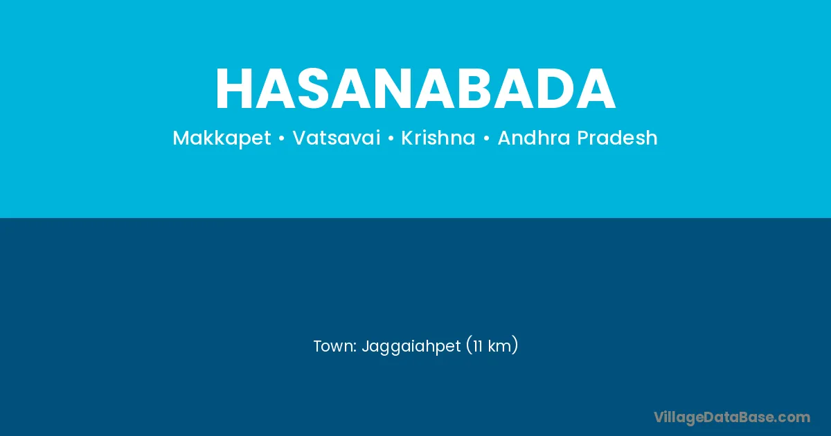 Jaggaiahpet (11 km) is the nearest town to Hasanabada village for major economic activities and is located approximately 11 km away.