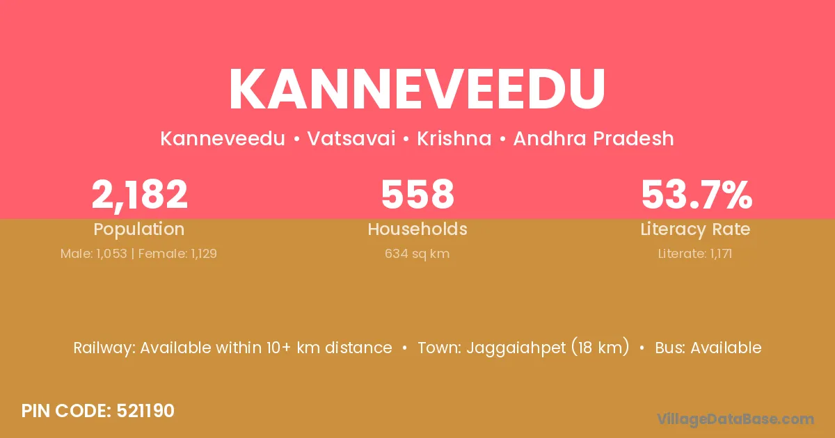 Jaggaiahpet (18 km) is the nearest town to Kanneveedu village for major economic activities and is located approximately 18 km away.