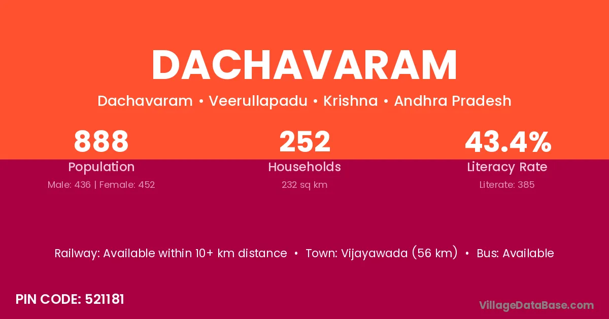 Dachavaram village has a total population of 888 people, of which 436 are males and 452 are females.