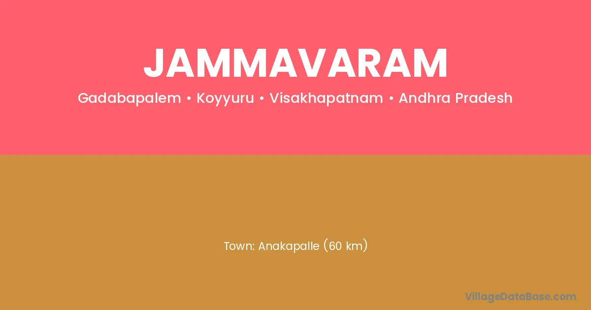 Vijayawada (50 km) is the nearest town to Jammavaram village for major economic activities and is located approximately 50 km away.