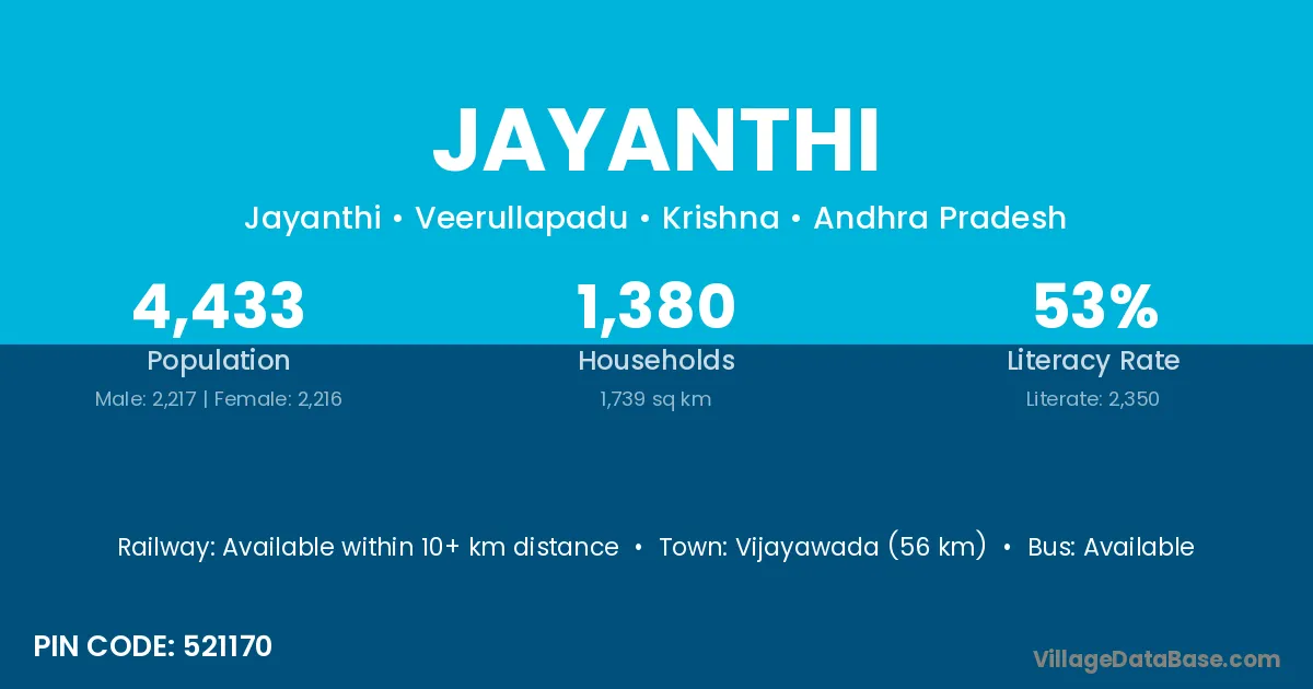 According to Census 2011 information, the village code of Jayanthi village is 521170.