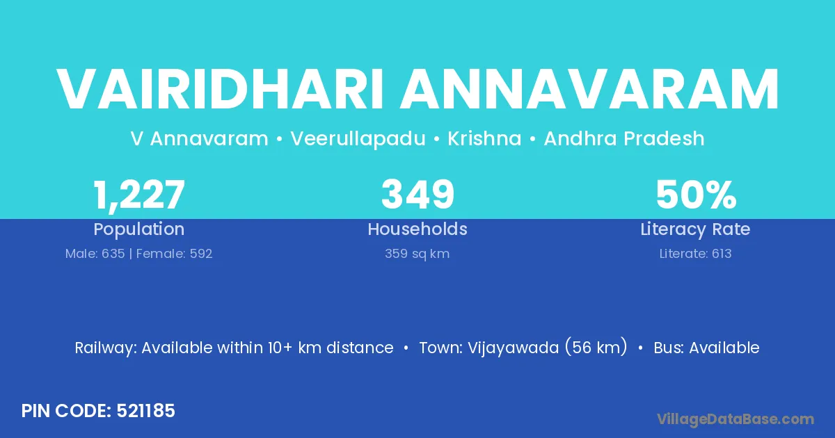 Vairidhari Annavaram village has a total population of 1,227 people, of which 635 are males and 592 are females.