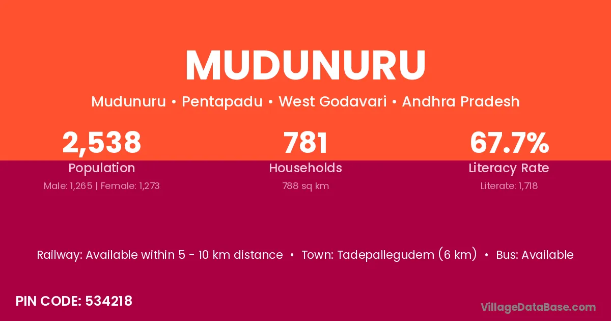 Gudivada (14 km) is the nearest town to Mudunuru village for major economic activities and is located approximately 14 km away.