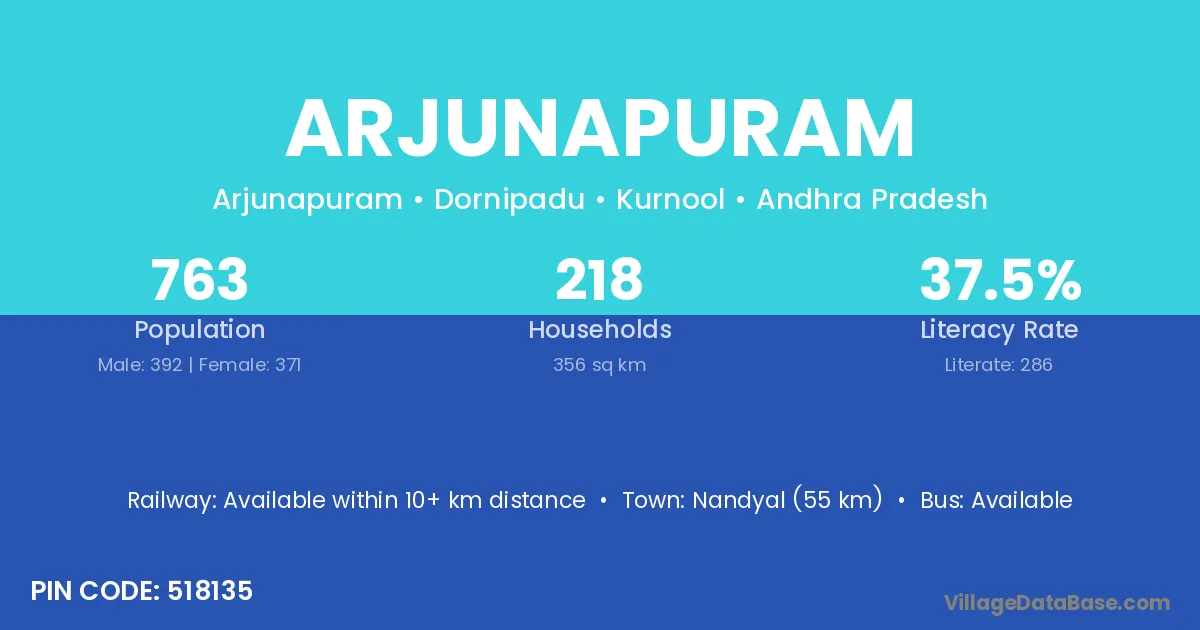 Nandyal (55 km) is the nearest town to Arjunapuram village for major economic activities and is located approximately 55 km away.