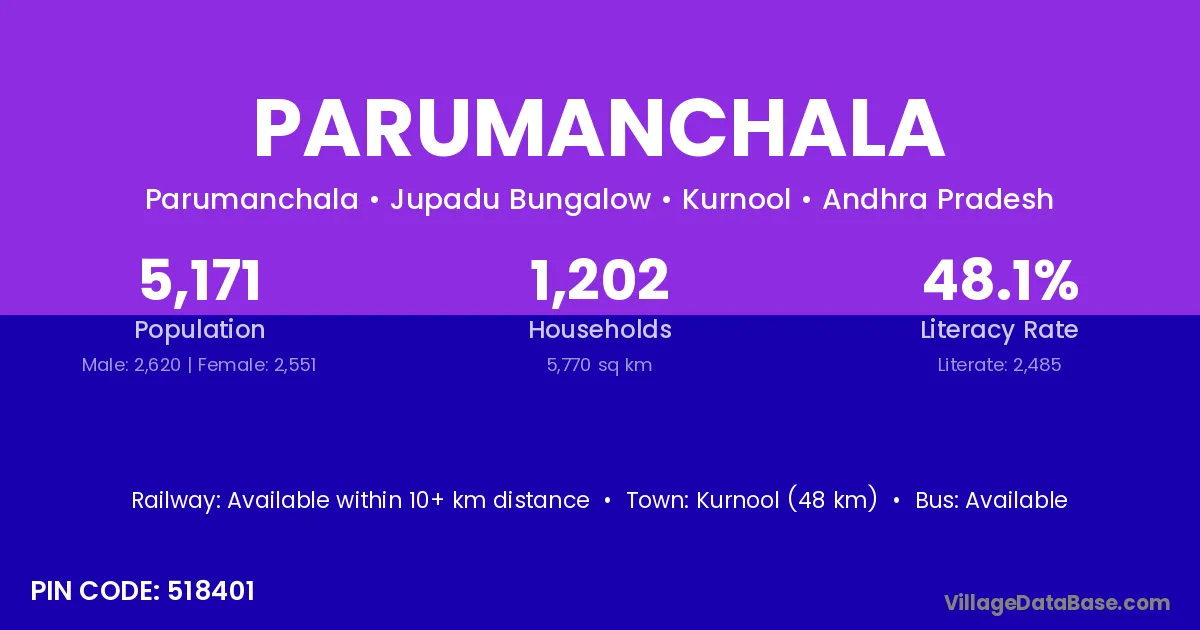 Kurnool (48 km) is the nearest town to Parumanchala village for major economic activities and is located approximately 48 km away.