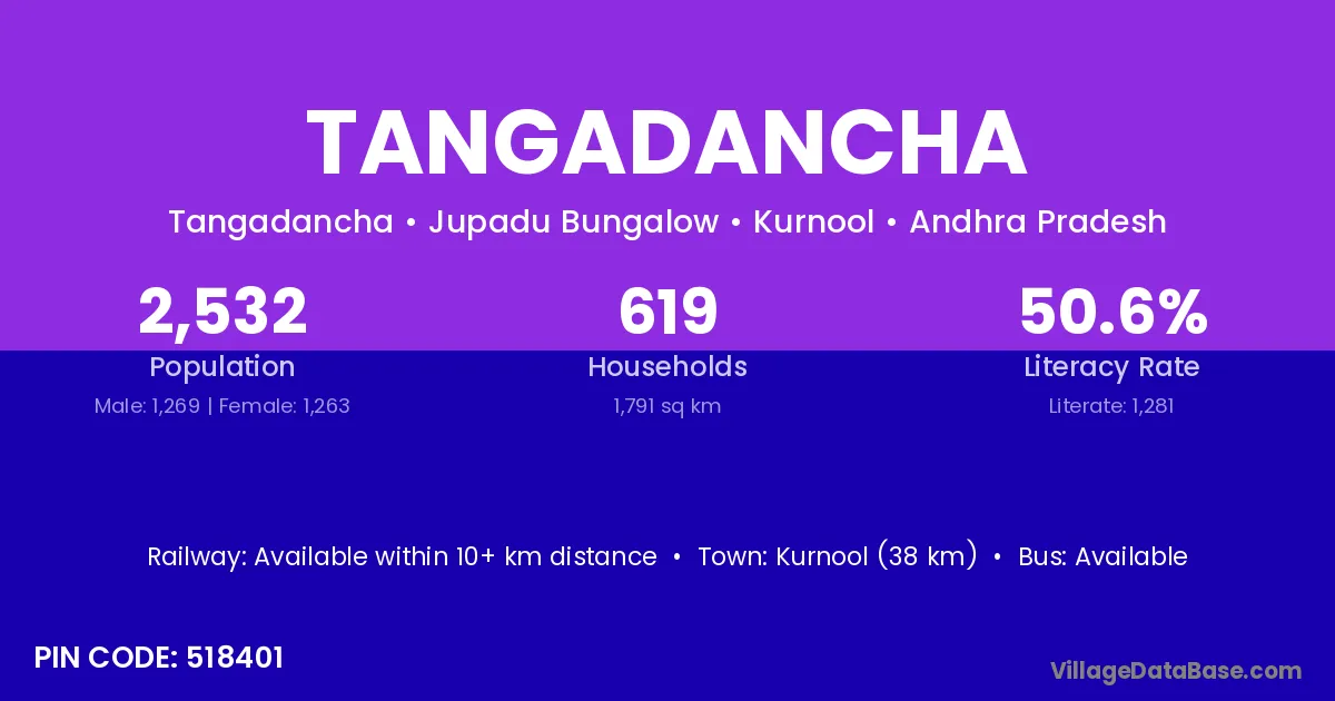 Kurnool (38 km) is the nearest town to Tangadancha village for major economic activities and is located approximately 38 km away.