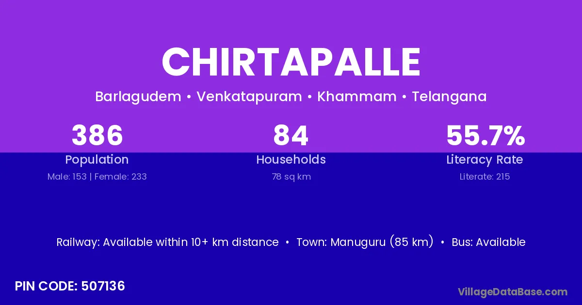 There are approximately 370 households in Chirtapalle village.