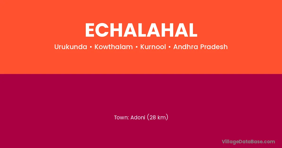 Adoni (28 km) is the nearest town to Echalahal village for major economic activities and is located approximately 28 km away.