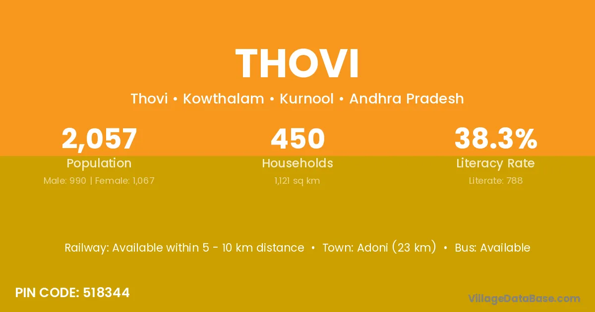 Adoni (23 km) is the nearest town to Thovi village for major economic activities and is located approximately 23 km away.