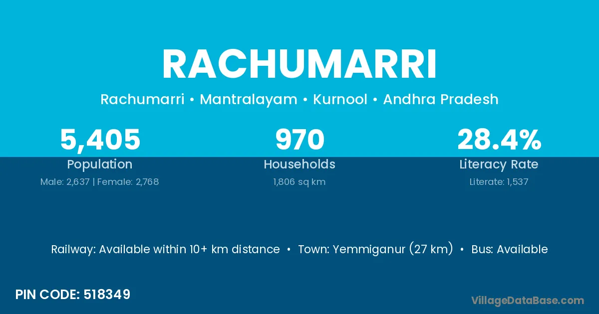Yemmiganur (27 km) is the nearest town to Rachumarri village for major economic activities and is located approximately 27 km away.