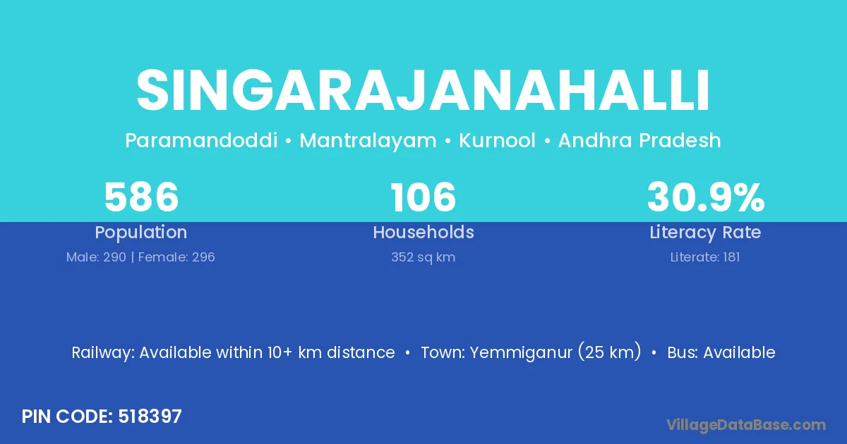 Yemmiganur (25 km) is the nearest town to Singarajanahalli village for major economic activities and is located approximately 25 km away.