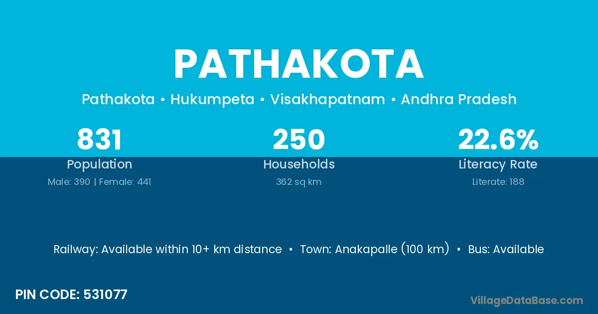 According to Census 2011 information, the village code of Pathakota village is 518412.