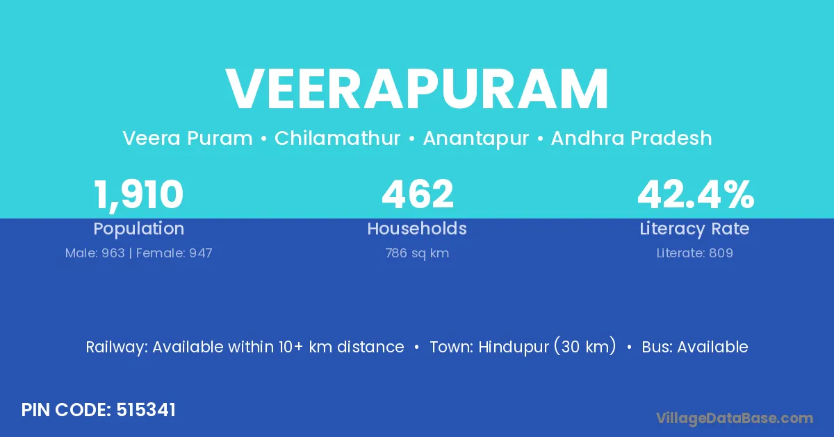 Kurnool (42 km) is the nearest town to Veerapuram village for major economic activities and is located approximately 42 km away.