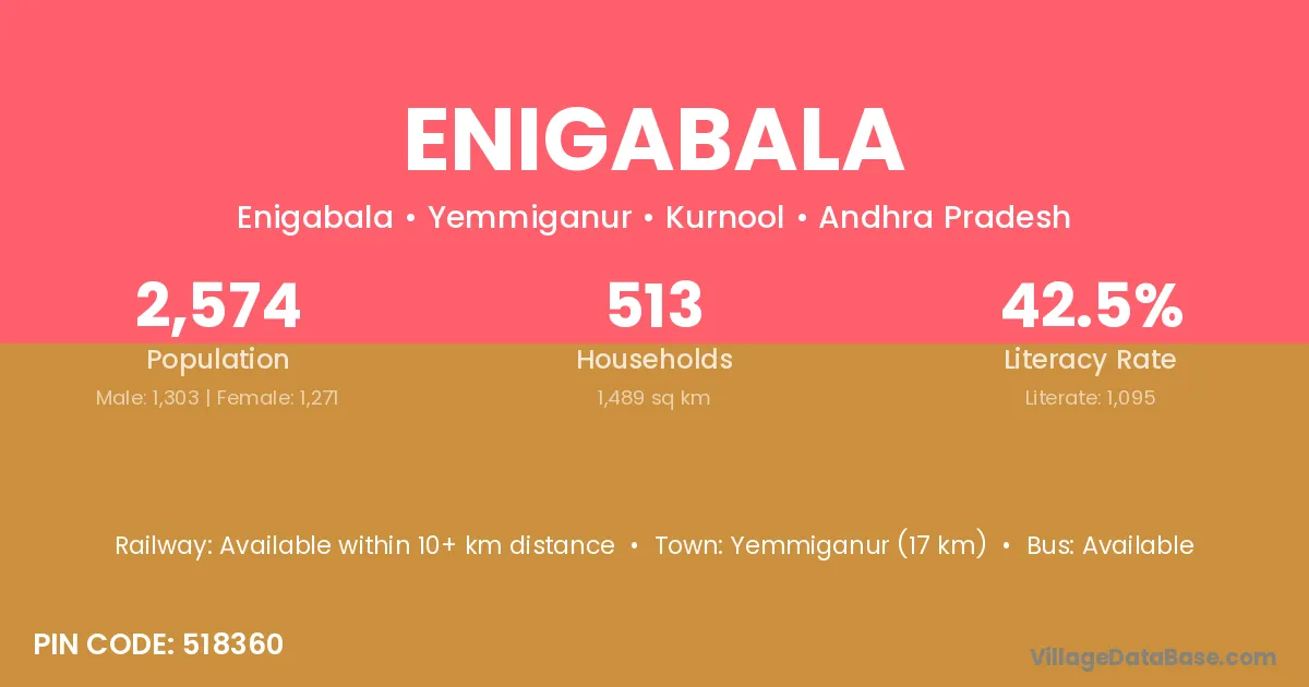 According to Census 2011 information, the village code of Enigabala village is 518360.