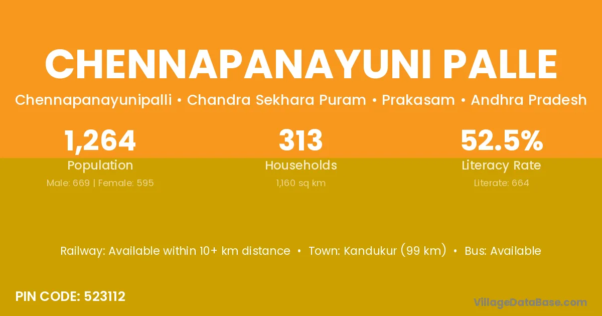 Chennapanayuni Palle village has a total population of 1,264 people, of which 669 are males and 595 are females.