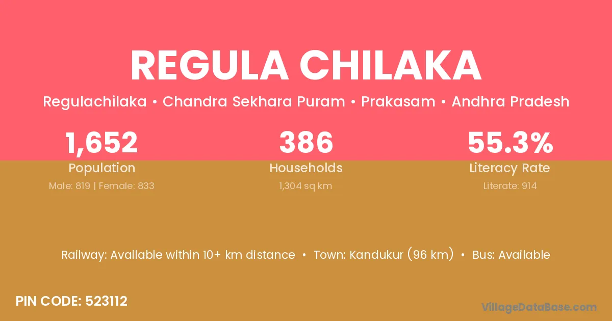 According to Census 2011 information, the village code of Regula Chilaka village is 523112.