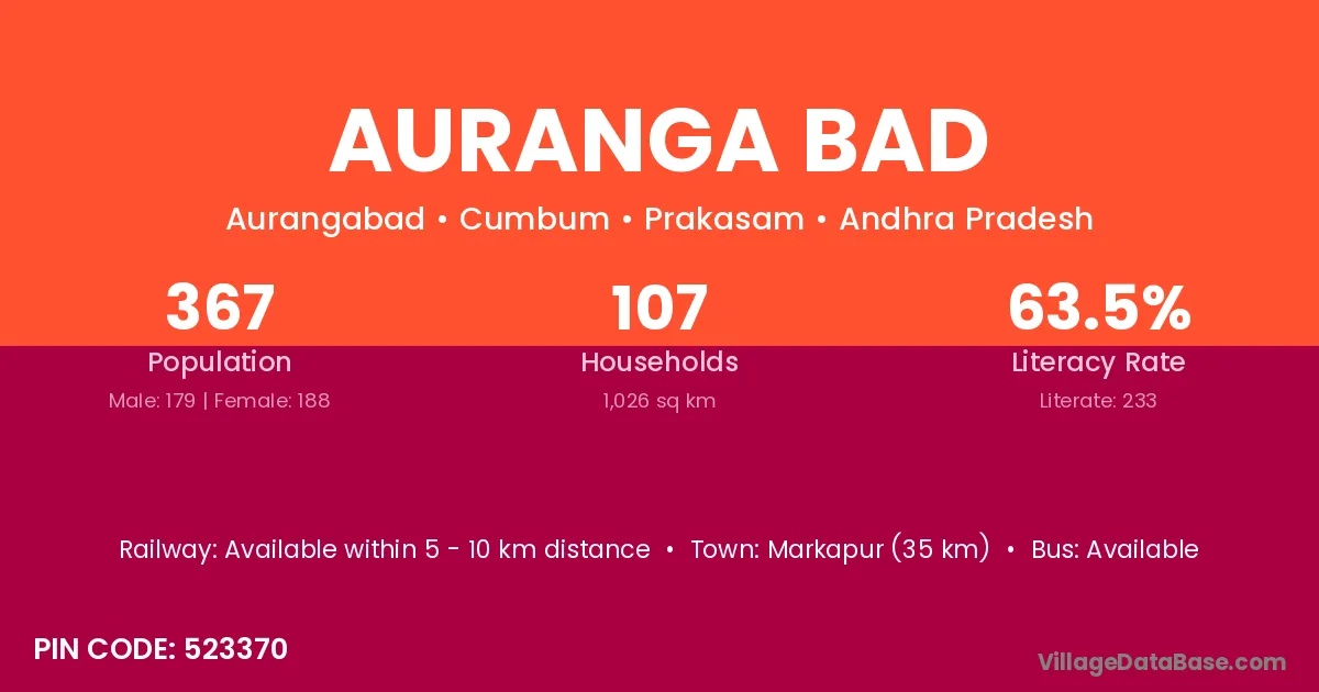 Markapur (35 km) is the nearest town to Auranga Bad village for major economic activities and is located approximately 35 km away.