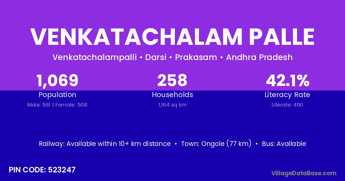 Venkatachalam Palle village has a total population of 1,069 people, of which 561 are males and 508 are females.