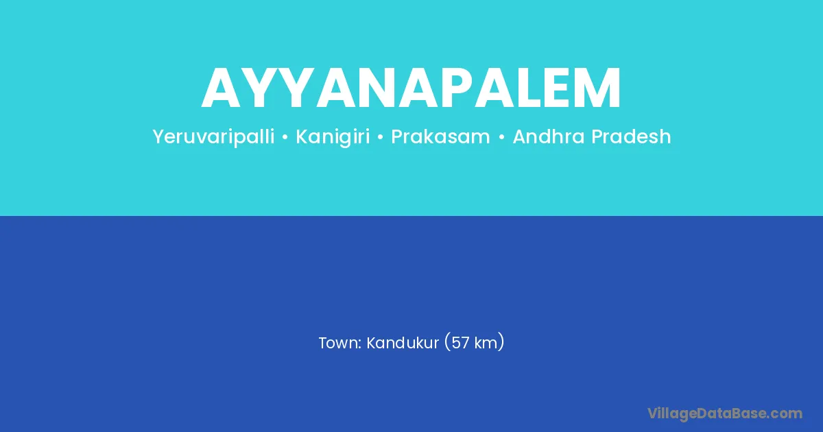 Kandukur (57 km) is the nearest town to Ayyanapalem village for major economic activities and is located approximately 57 km away.