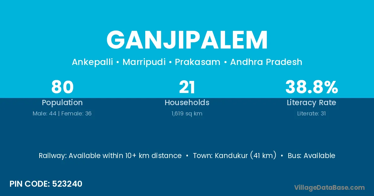 Ganjipalem village has a total population of 80 people, of which 44 are males and 36 are females.