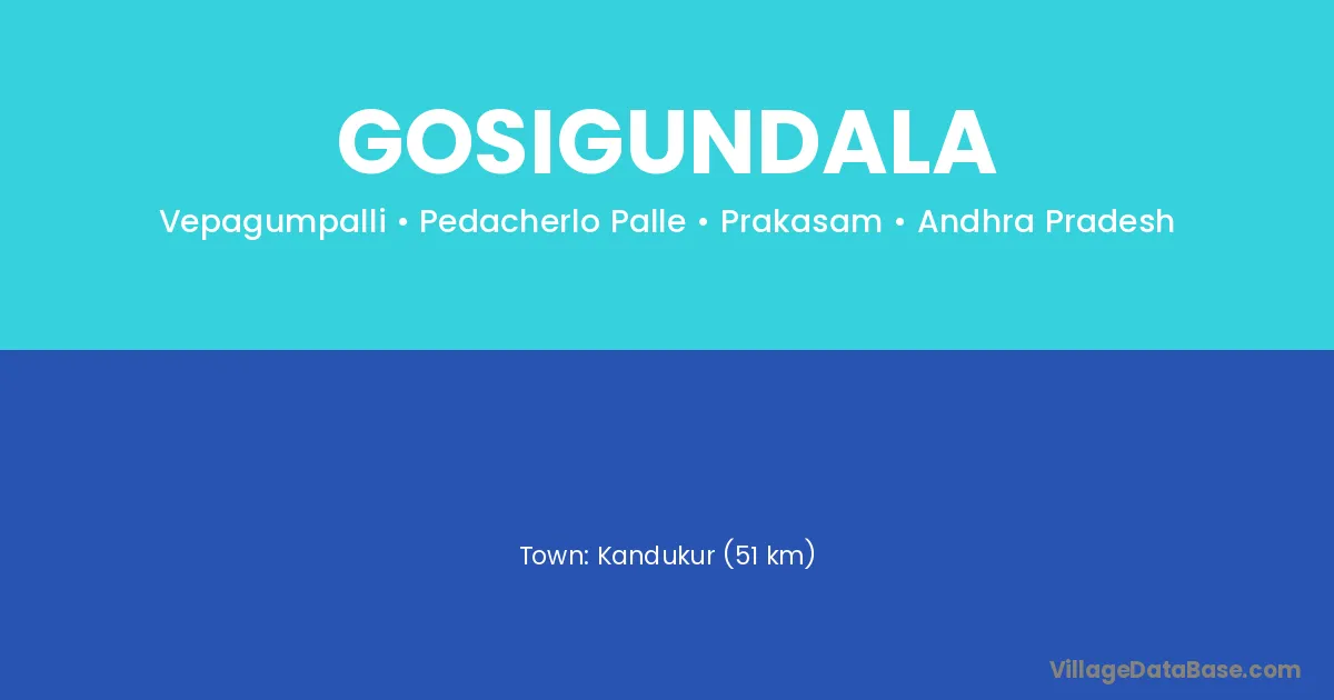 Kandukur (51 km) is the nearest town to Gosigundala village for major economic activities and is located approximately 51 km away.