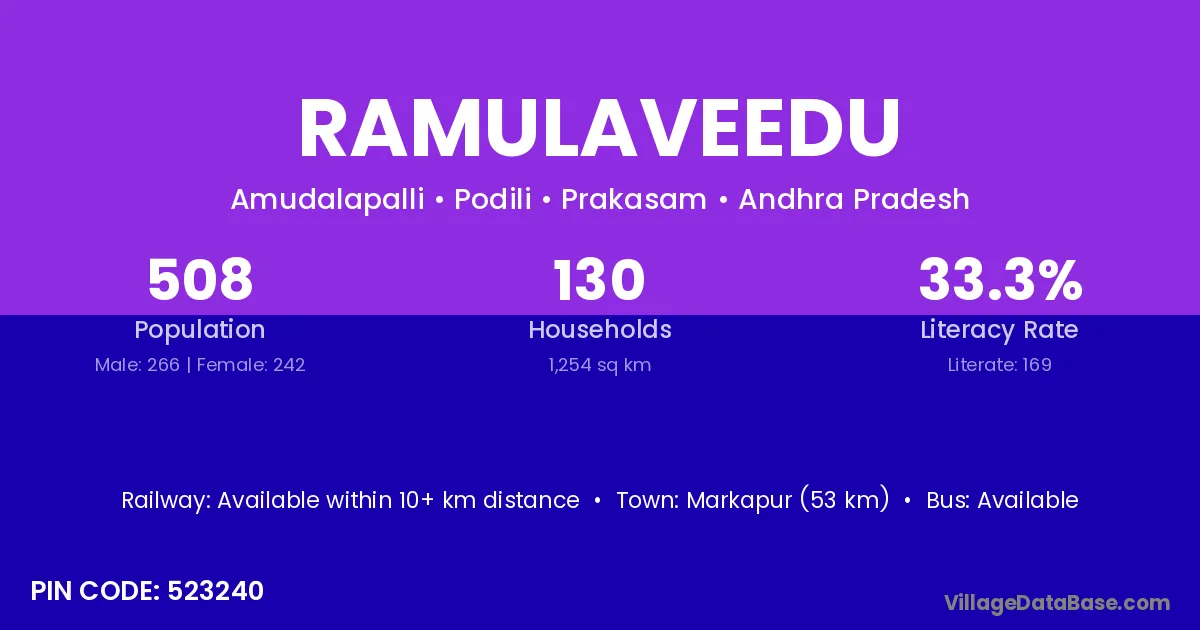 According to Census 2011 information, the village code of Ramulaveedu village is 523240.