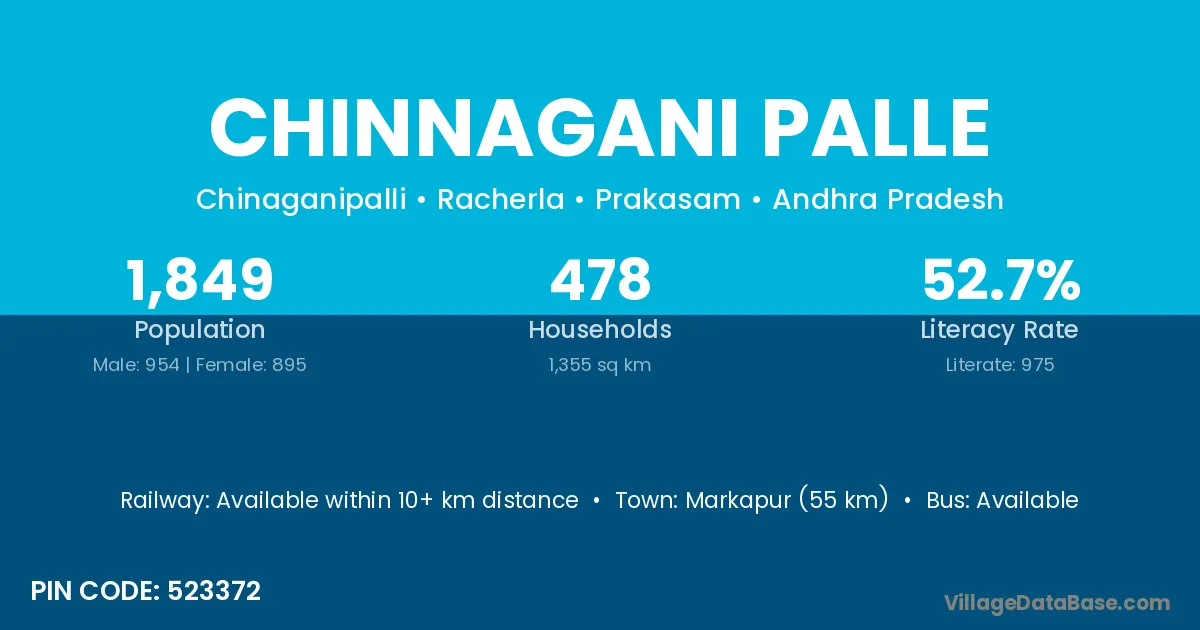 Markapur (55 km) is the nearest town to Chinnagani Palle village for major economic activities and is located approximately 55 km away.