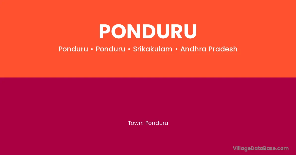Ongole (23 km) is the nearest town to Ponduru village for major economic activities and is located approximately 23 km away.