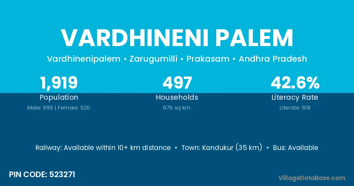 Vardhineni Palem village has a total population of 1,919 people, of which 999 are males and 920 are females.