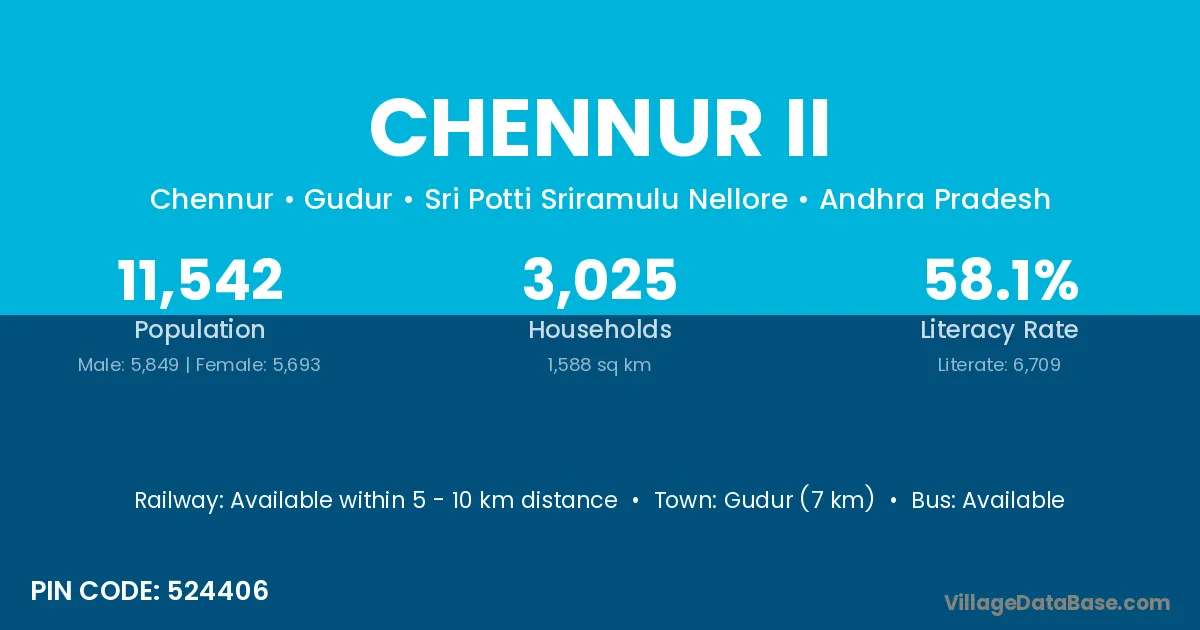 Gudur (7 km) is the nearest town to Chennur Ii village for major economic activities and is located approximately 7 km away.