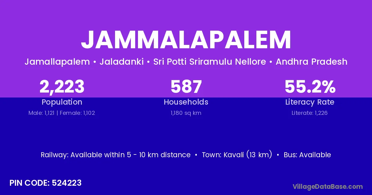 According to Census 2011 information, the village code of Jammalapalem village is 524223.
