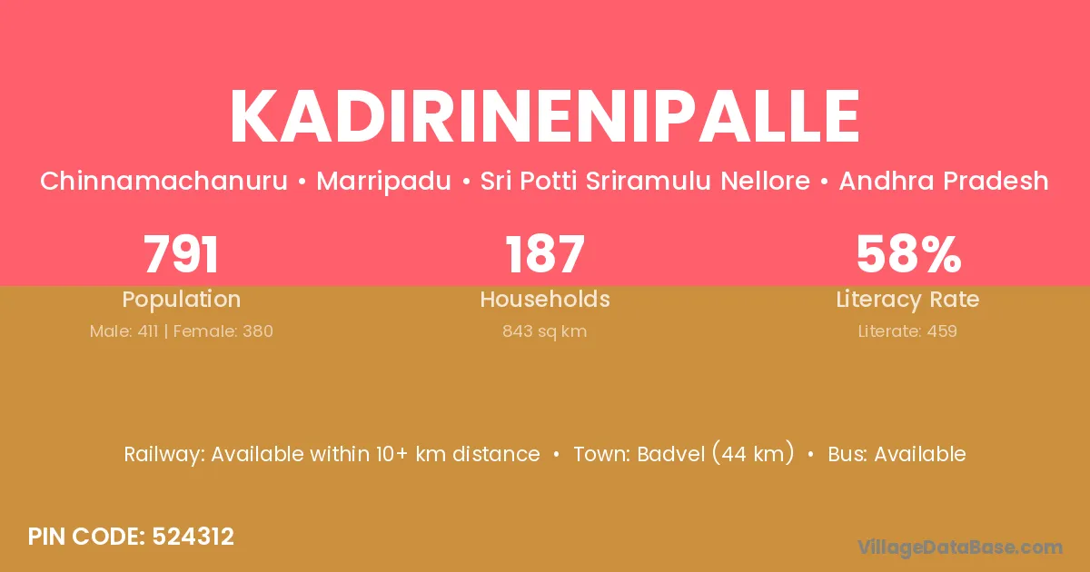 There are approximately 187 households in Kadirinenipalle village.