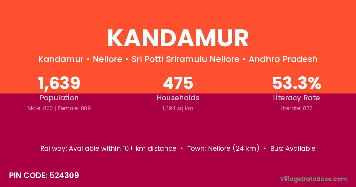 Nellore (24 km) is the nearest town to Kandamur village for major economic activities and is located approximately 24 km away.