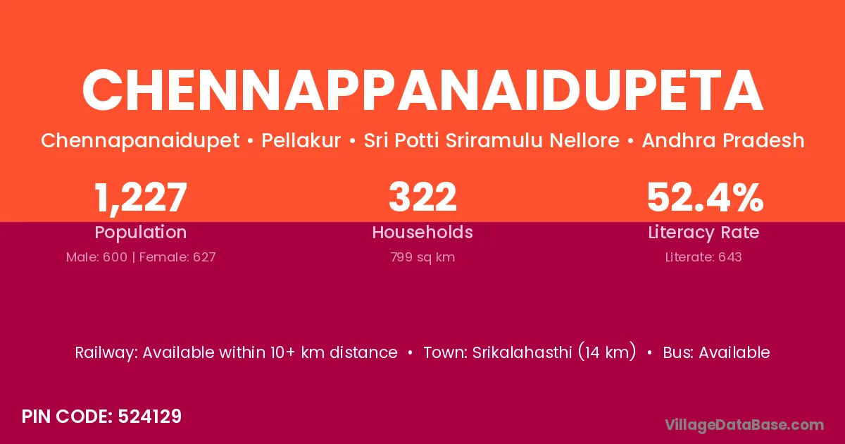 Chennappanaidupeta village has a total population of 1,227 people, of which 600 are males and 627 are females.