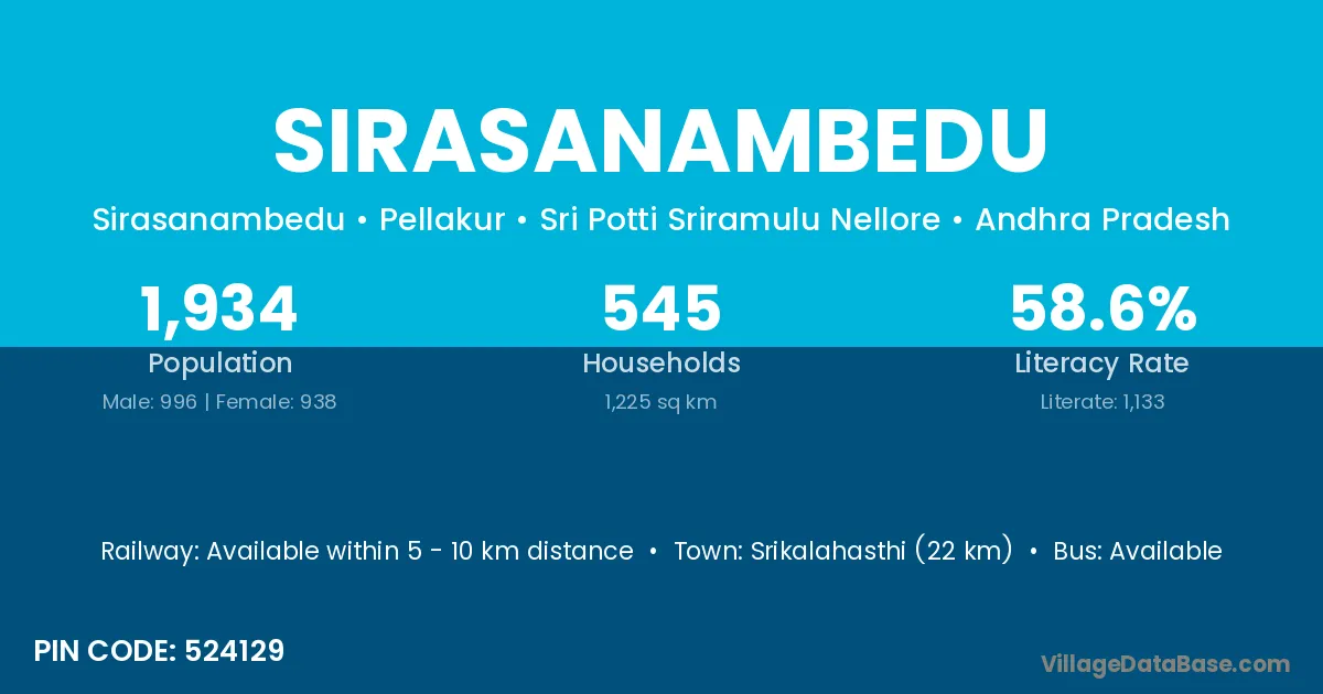 Srikalahasthi (22 km) is the nearest town to Sirasanambedu village for major economic activities and is located approximately 22 km away.